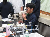 1日目は寿都漁港に行き、プランクトン採集ネットを用いてプランクトンを集めました。目に見えない大きさの微生物が生態系を支えていることを、顕微鏡での観察を通じて学びました。