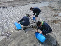 2日目は滝ノ潤の岩礁に行き、寿都の海の磯焼けの現状や、たい肥ブロックを用いた対策について学びました。