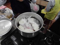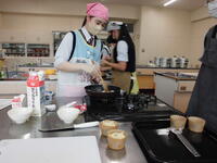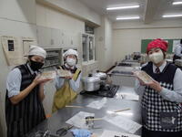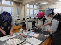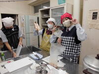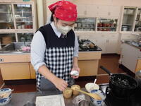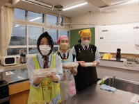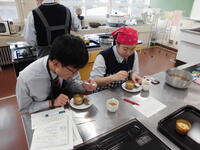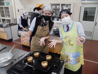 事後学習では調理工程を振り返り、混ぜ方や加熱温度の課題点を話し合いました。また、たんぱく質の凝固反応は化学の授業と繋がりがあります。教科を横断して、食品の特性や調理操作の大切さ等、さらに理解を深めていきましょう!