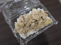完成した豚丼は、パックに詰めて持ち帰り!ごま油の香りが食欲をそそる受験生の夜食となりました!