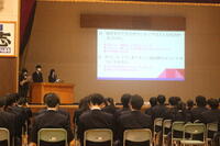 12月3日(水)の5・6時間目に探究活動発表会が行われました。地域の課題を探究するプロジェクトやインターンシップを通した「働くこと」に関するレポート、今年度進路が決定した生徒たちの経験談やアドバイスなどをテーマとした発表を行いました。各チームとも情報収集、分析、まとめとよく整理されていて、生徒たちはメモを取りながら真剣に聞き入っていました。いろんな気づきがあったのではないかと思います。