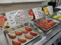 りんごは、シナノゴールド、ジョナゴールド、サンふじの3種類を使用。果肉の硬さや甘味・酸味の違いを比べながら、品種ごとの特徴を実感しました。