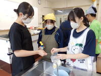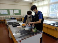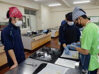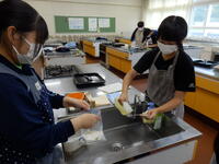 事後学習では調理工程を振り返り、混ぜ方や加熱温度の課題点を話し合いました。また、たんぱく質の凝固反応は化学の授業と繋がりがあります。教科を横断して、食品の特性や調理操作の大切さ等、さらに理解を深めていきましょう!