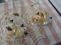 お好みでアーモンドや甘栗をトッピング。完成したクッキーはハロウィン仕様にラッピングして持ち帰りました。